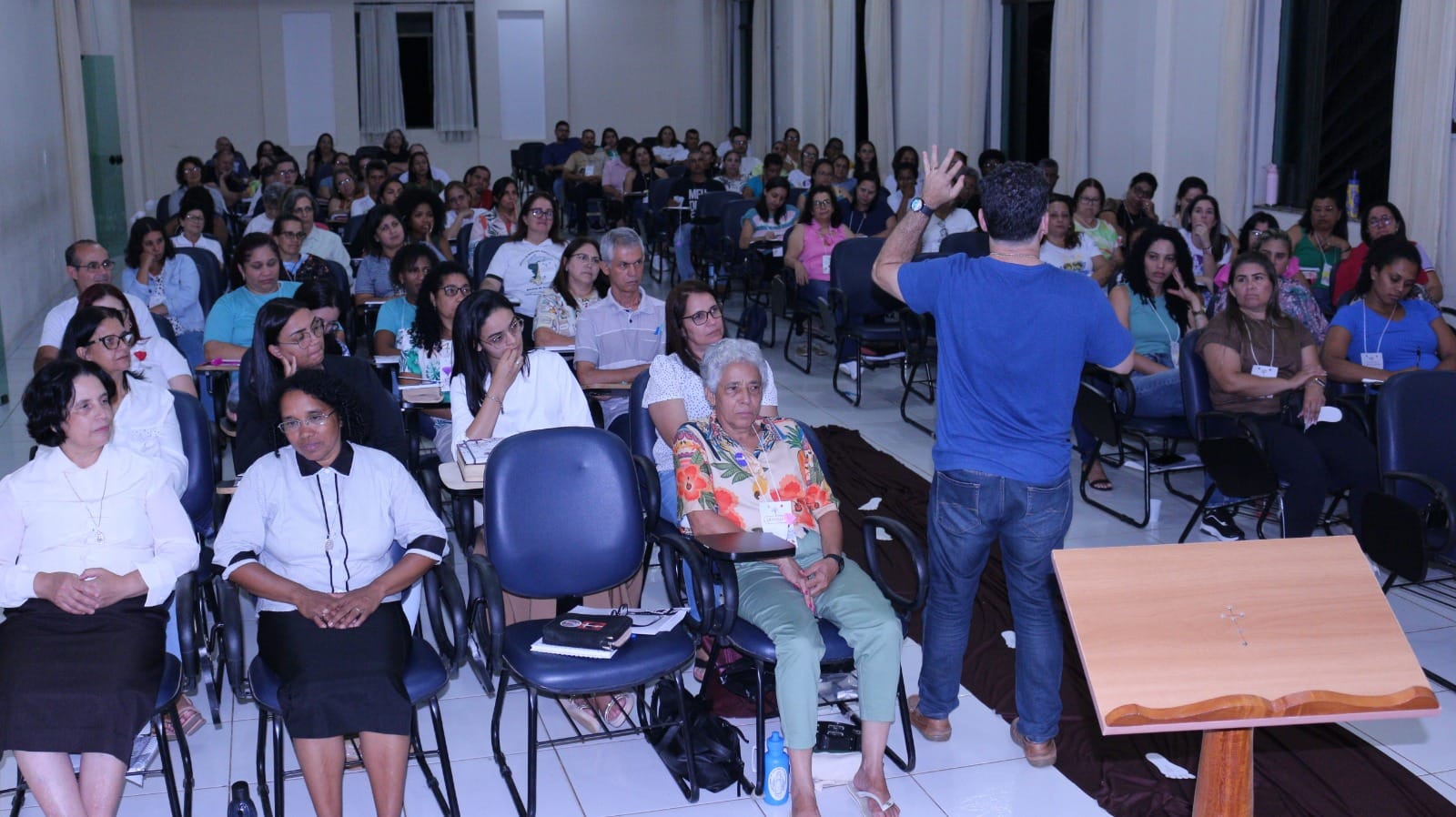 Nos dias 8, 9 e 10 de novembro, ocorreu o Encontro Diocesano de Catequese, realizado no Centro Pastoral Bom Pastor, em Manhuaçu. O evento reuniu catequistas e formadores de diversas comunidades com o objetivo de refletir sobre a terceirização da fé. A proposta da reflexão foi abordar diretamente aqueles que têm a responsabilidade de ensinar e instruir na fé cristã, incentivando a consciência sobre a vocação de ser catequista e o compromisso com a vivência cristã.