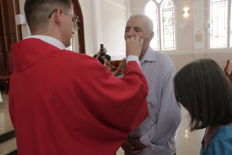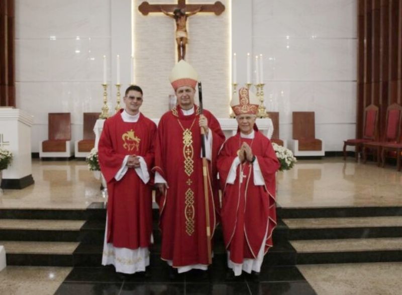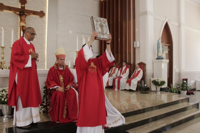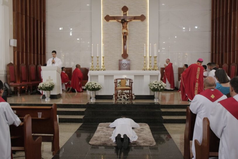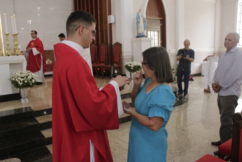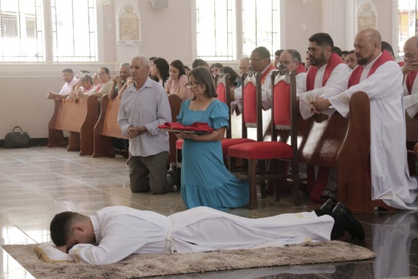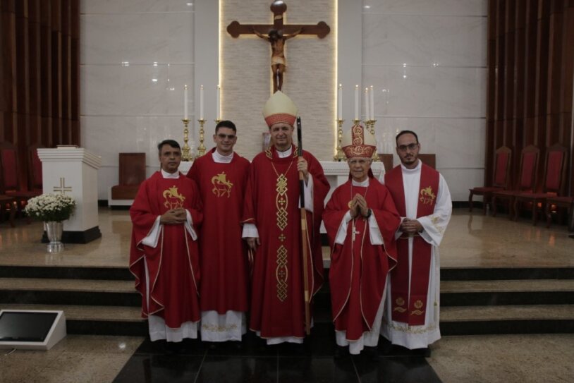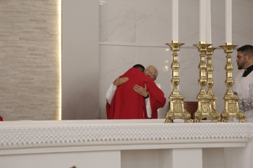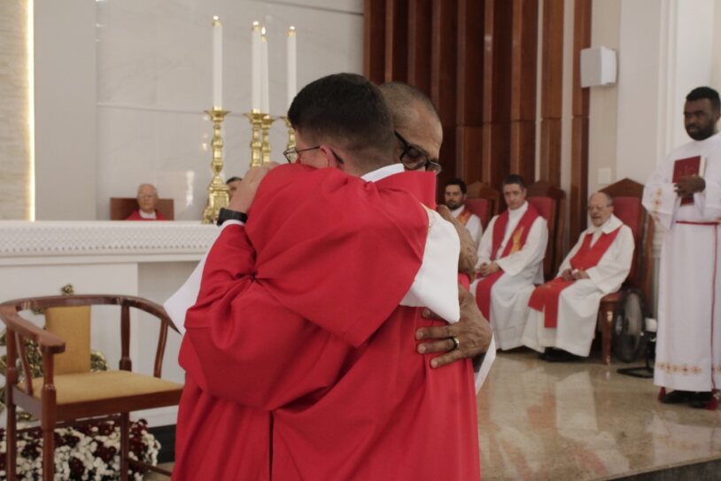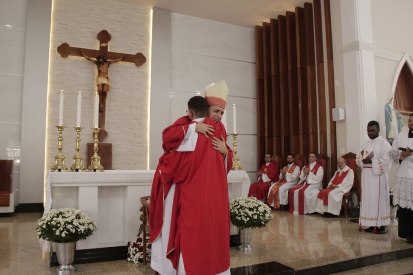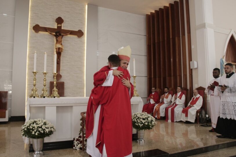 Já ordenado, o novo diáconos recebeu as veste litúrgica e os Santo Evangelho, assumindo, mais uma vez, a missão de anunciar e testemunhar os ensinamentos de Jesus. Em seguida, ele foi cumprimentado pelo bispo com um abraço de paz e acolhido ao presbitério.